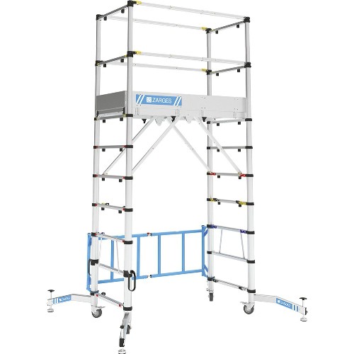 Robust och smidig hantverkarställning. Enkel hantering av ställningsramen och smidiga snäpplås, lås och fäll ihop ställningen med bara ett klick. Utrustad med Ø 125 mm länkhjul med låsningsbroms, kan uppgraderas till höjdjusterbara hjul med hjälp av hjuladapter. Plattformsstorlek 1,80 x 0,60 m. Kan byggas på med påbyggnadspaket. I enlighet med EN 1004, ställningsklass 3 (kan belastas upp till 200 kg/m²).