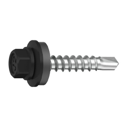 Borrande och gängpressande byggplåtskruv lackerad i färg som passar byggplåten. För plåt mot lättbalk.