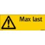 Hårdplastskylt med varningssymbol för generell fara, och text Max last samt utrymme för egen text.